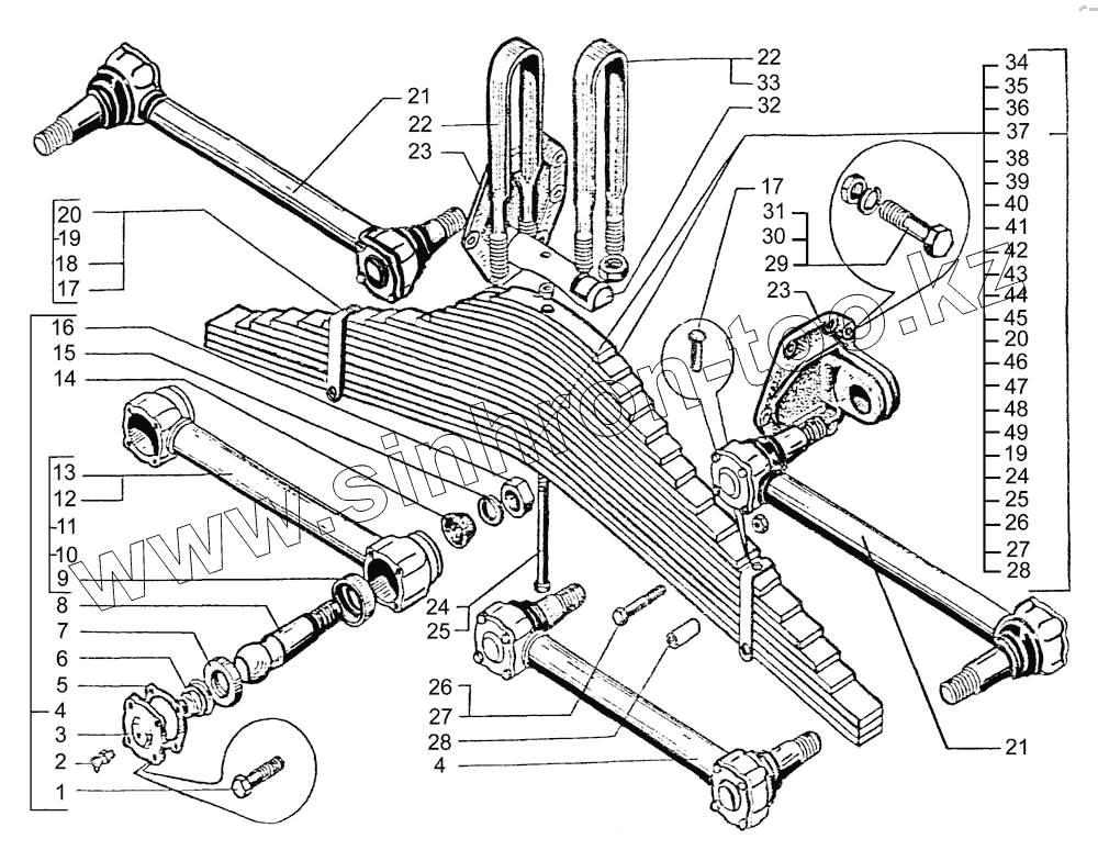 Каталог запасных частей к технике: КрАЗ-7133H4. Рессоры задние и штанги реактивные