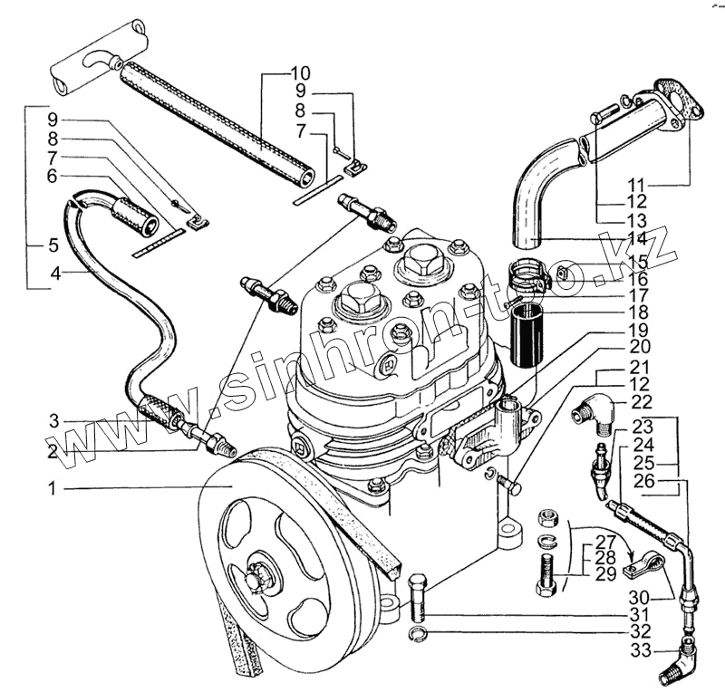 Каталог запасных частей к технике: КрАЗ-7133H4. Установка и привод компрессора