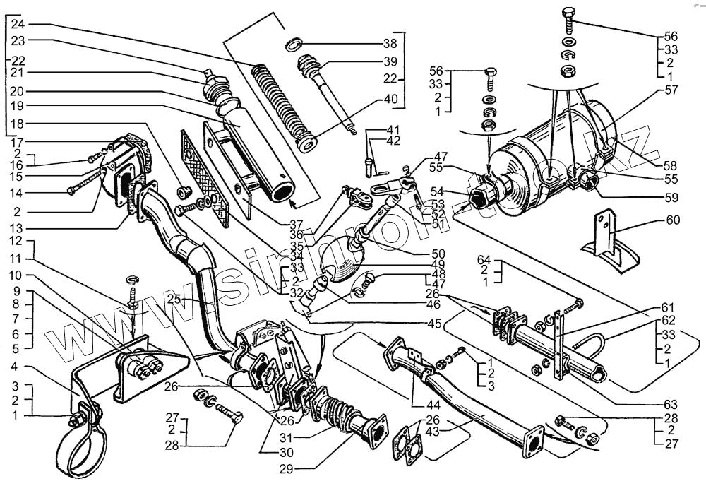 Каталог запасных частей к технике: КрАЗ-7133С4. Система выпуска отработавших газов