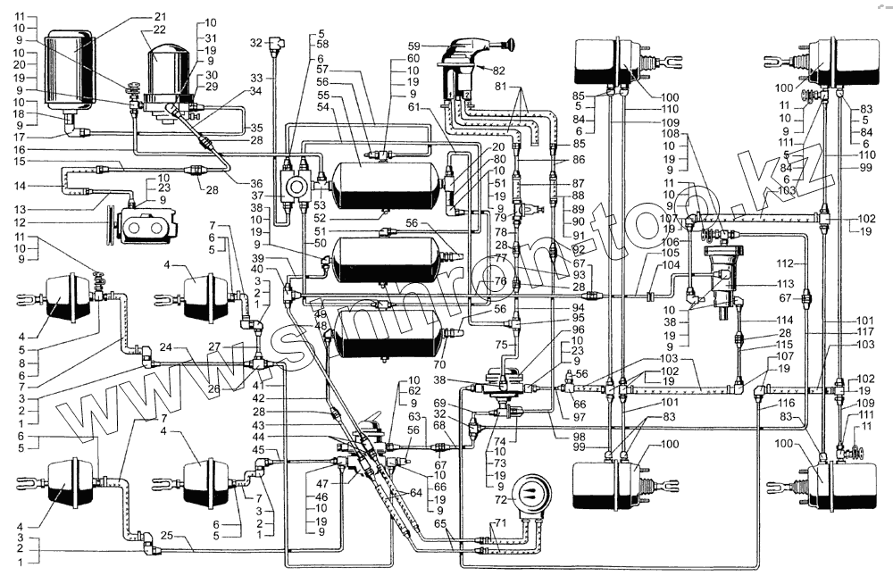 Каталог запасных частей к технике: КрАЗ-7133С4. Воздухопроводы и аппараты тормозной системы