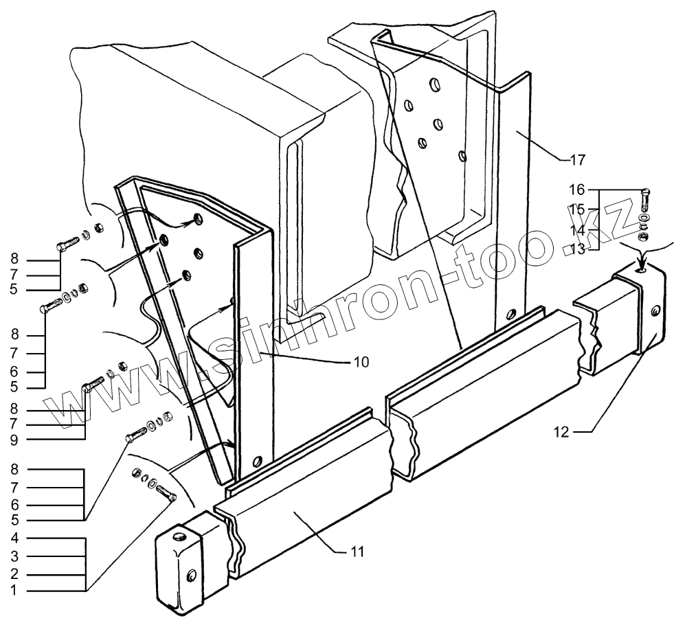 Каталог запасных частей к технике: КрАЗ-7133С4. Заднее защитное устройство