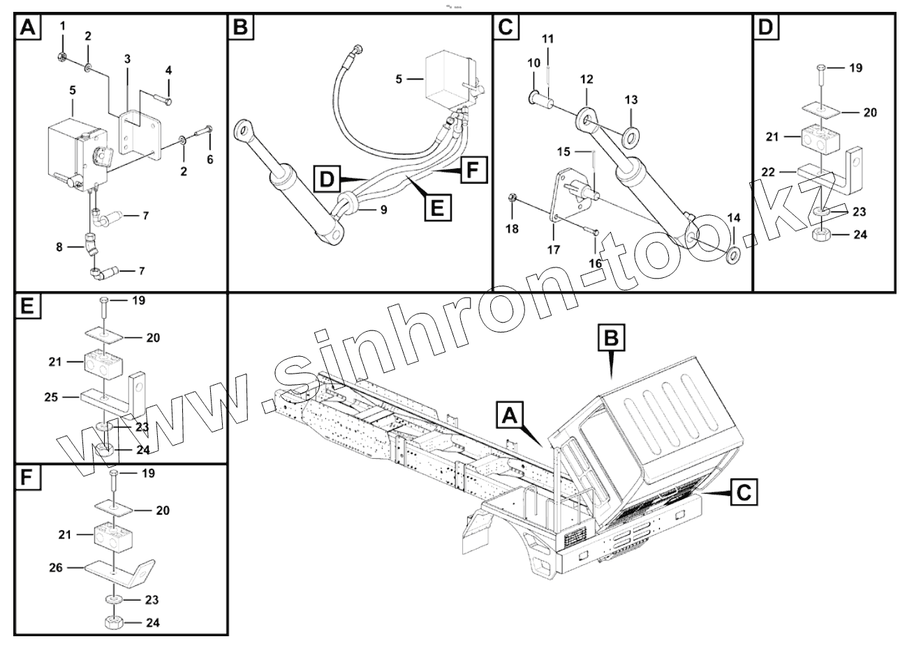 | 12 | 4120001145 | Cab fliping cylinder | |
