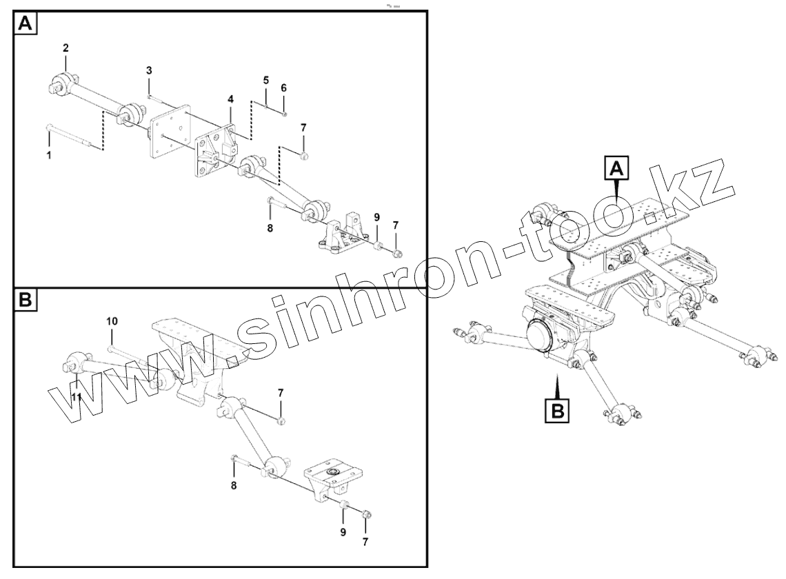 Каталог запасных частей к технике: LGMG MT76A. Rear thrusting rod mounting assembly