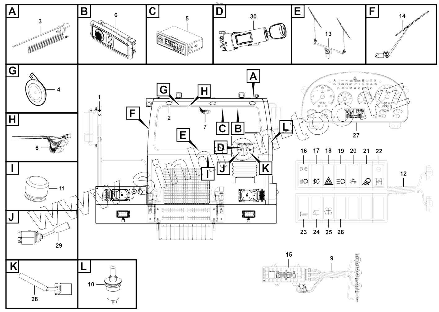 | 20 | 4130000342 | Rear cab work light rocker switch JK939C | |