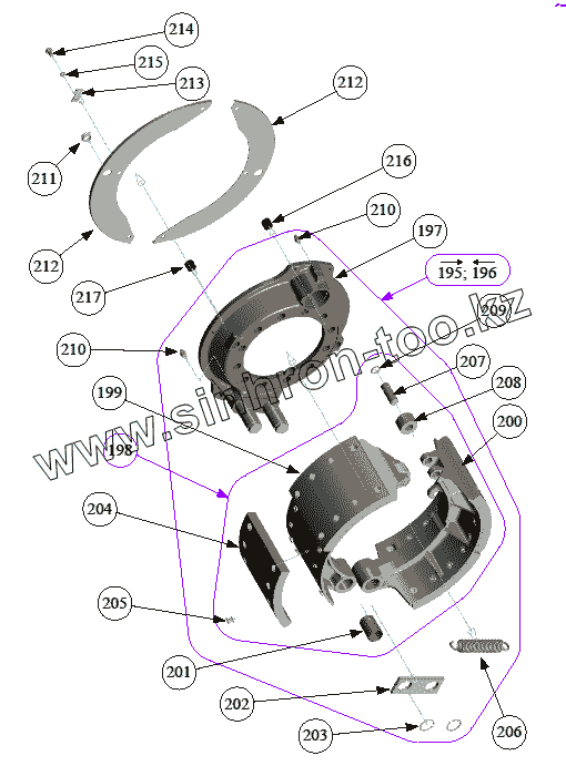 | 199 | 340-005-7456 | Колодка тормозная с накладками в сборе верхняя | |