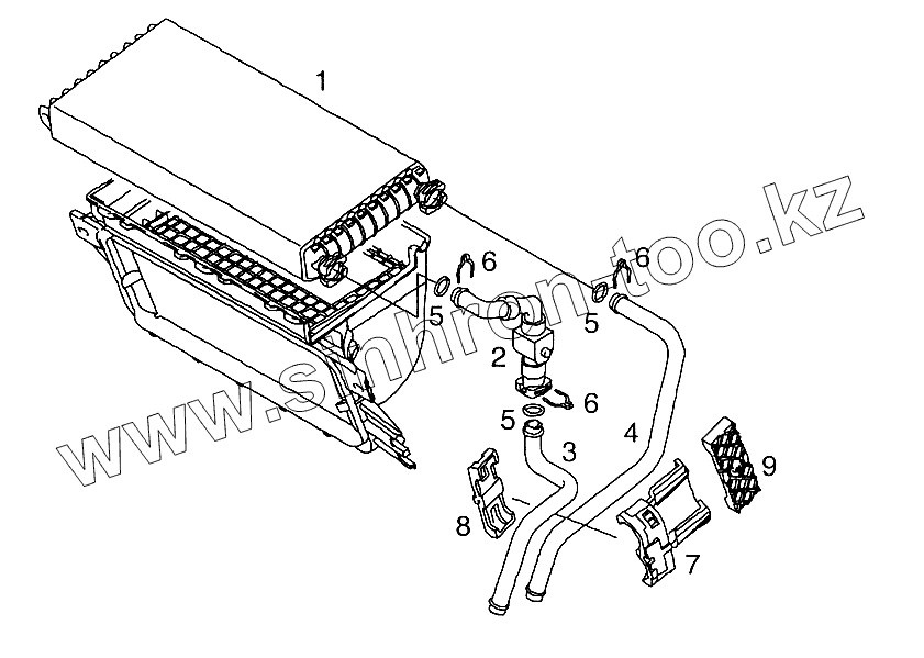 Трубопроводы охлаждающей жидкости 1-цилиндрового компрессора