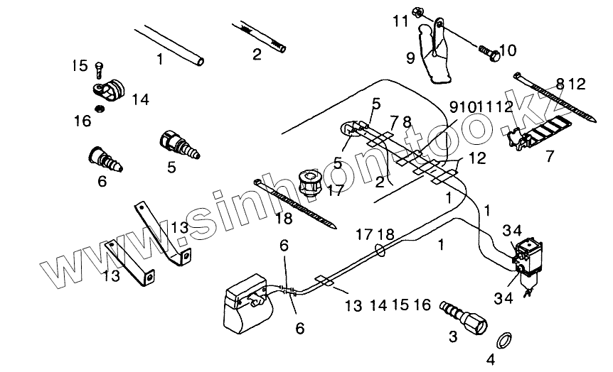 Трубопроводы охлаждающей жидкости 1-цилиндрового компрессора