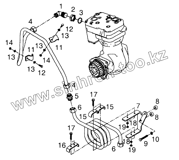 Трубопроводы охлаждающей жидкости 1-цилиндрового компрессора