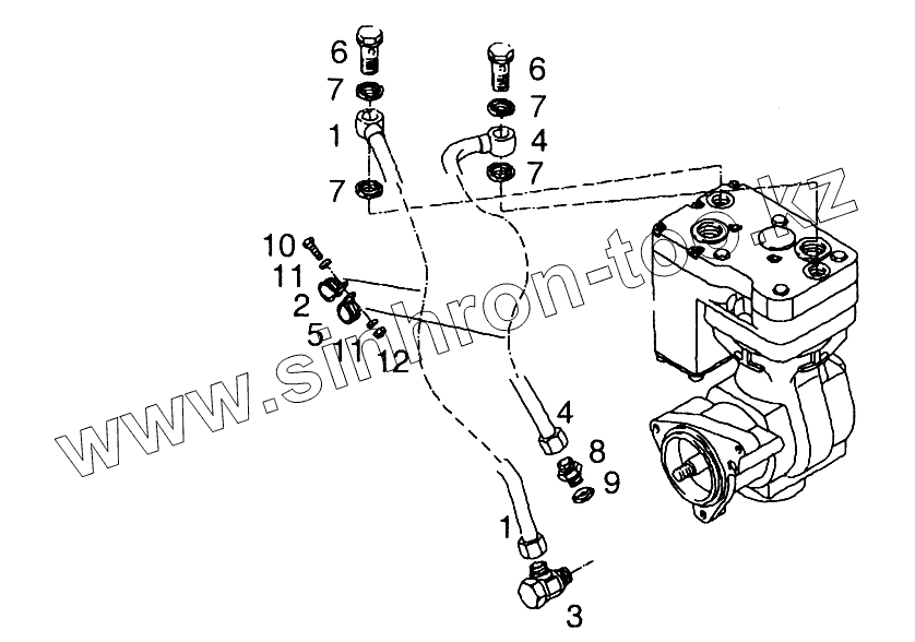 Каталог запасных частей к технике: MAN TGL. Трубопроводы охлаждающей жидкости 1-цилиндрового компрессора
