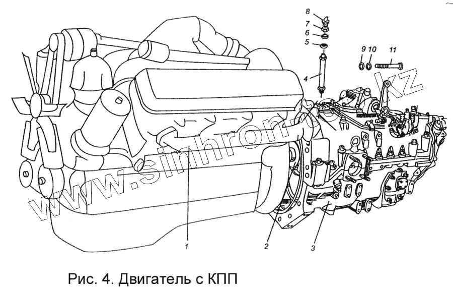Каталог запасных частей к технике: МАЗ КПП МАЗ-543205-070. Двигатель с КПП