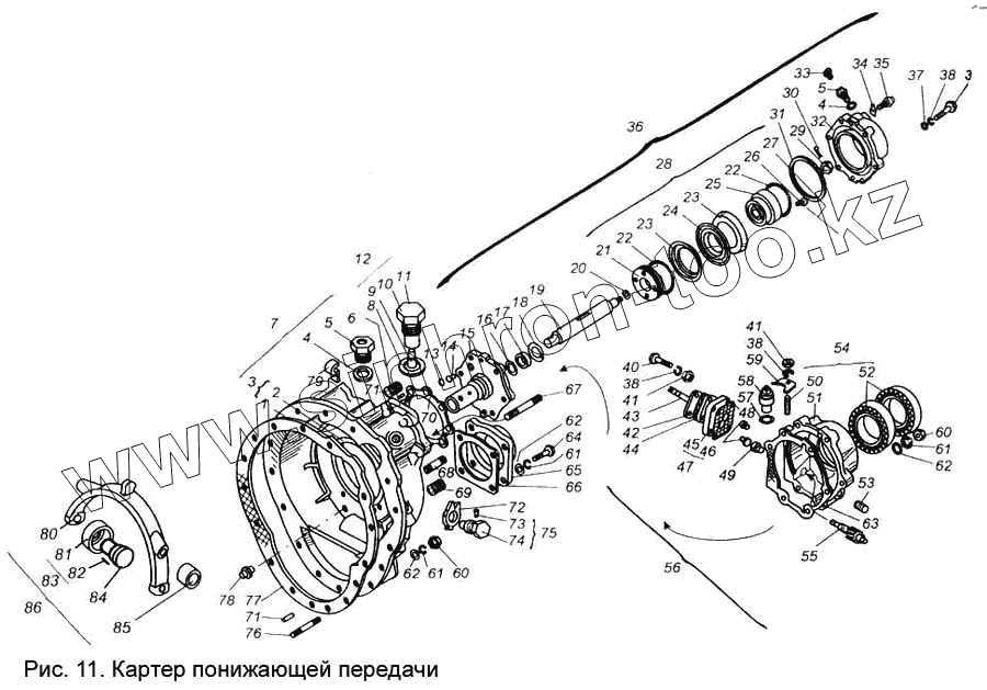 Каталог запасных частей к технике: МАЗ КПП МАЗ-543205-070. Картер понижающей передачи