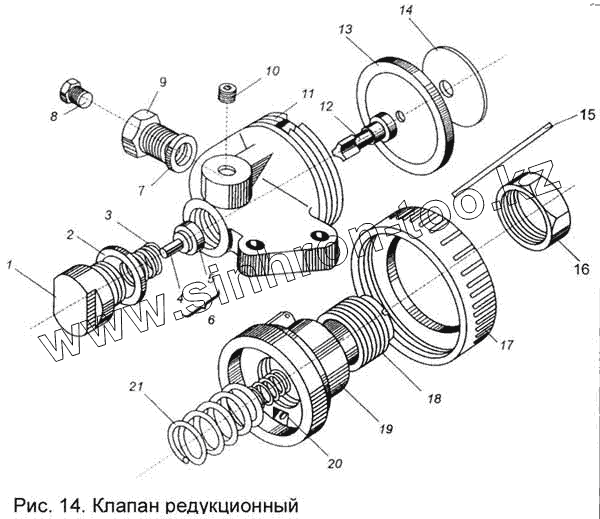 Каталог запасных частей к технике: МАЗ КПП МАЗ-543205-070. Клапан редукционный