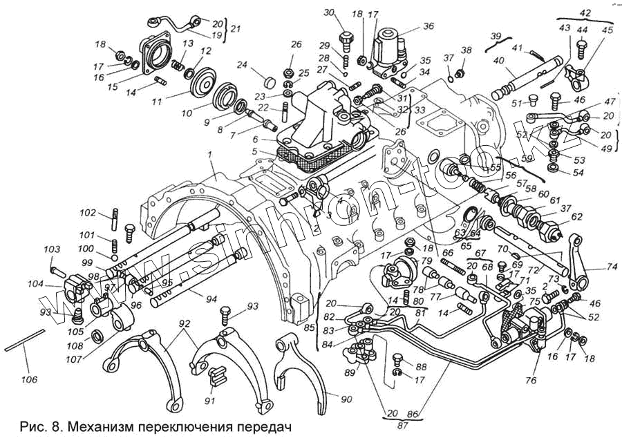Каталог запасных частей к технике: МАЗ КПП МАЗ-543205-070. Механизм переключения передач