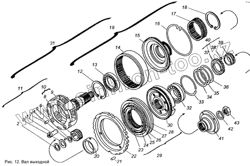 Каталог запасных частей к технике: МАЗ КПП МАЗ-543205-070. Вал выходной