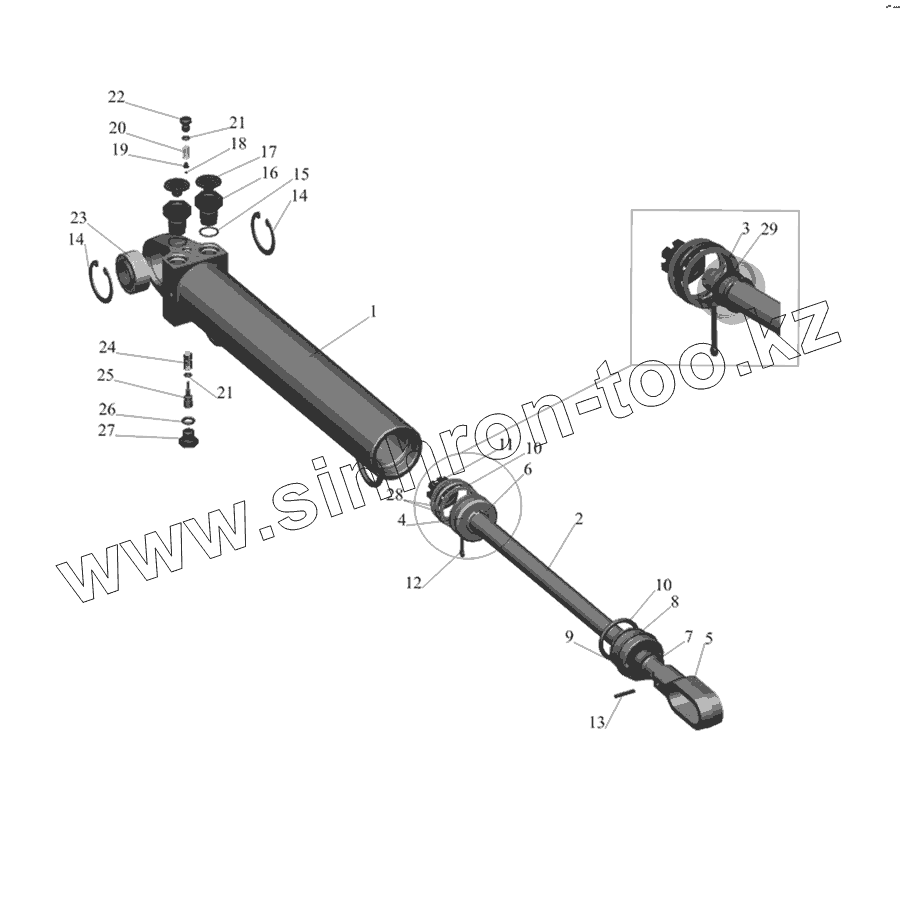 Каталог запасных частей к технике: МАЗ-437030 (Зубренок). Гидроцилиндр 4370-5003010