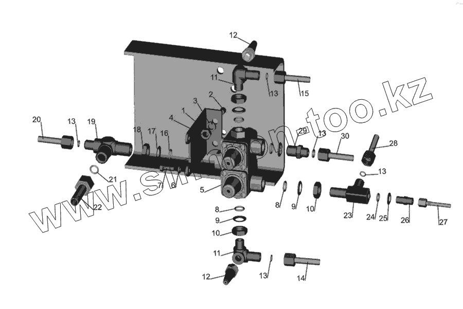 Каталог запасных частей к технике: МАЗ-437030 (Зубренок). Крепление четырехконтурного клапана