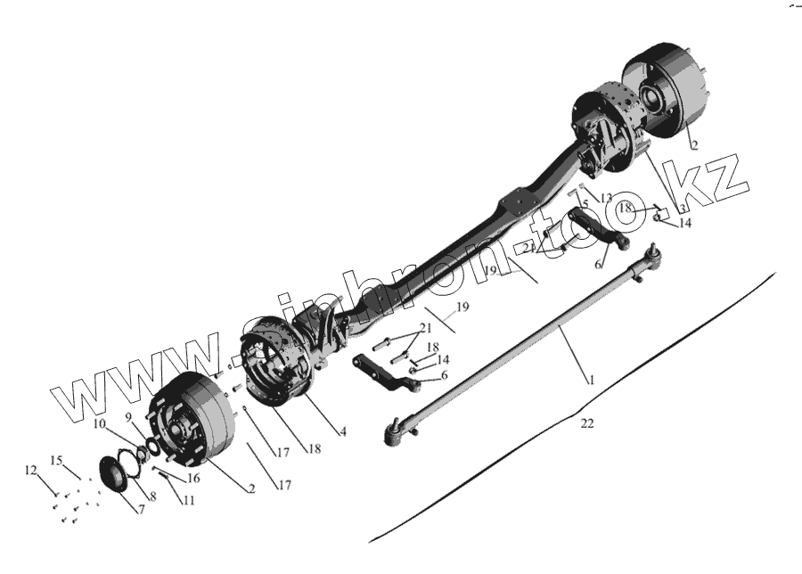 Каталог запасных частей к технике: МАЗ-437030 (Зубренок). Передняя ось 4370-3000015