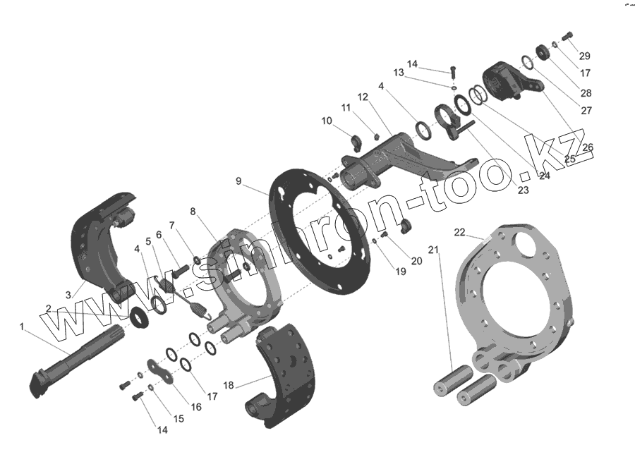 Каталог запасных частей к технике: МАЗ-437030 (Зубренок). Тормозной механизм передней оси