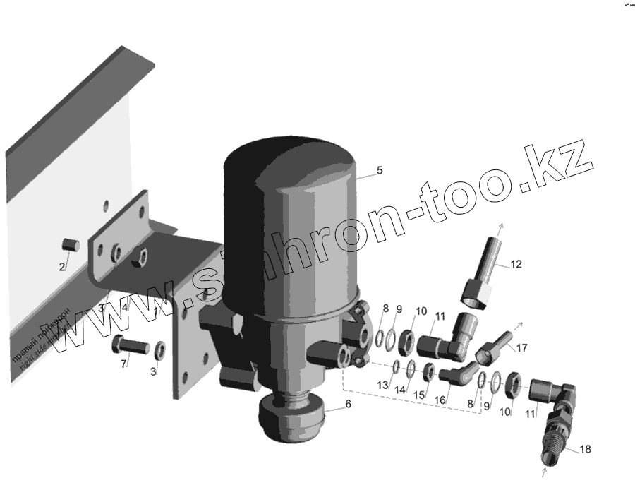Каталог запасных частей к технике: МАЗ-437030 (Зубренок). Установка осушителя воздуха и присоединительной арматуры