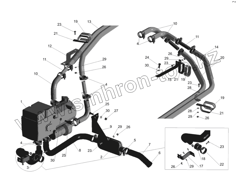 Каталог запасных частей к технике: МАЗ-437030 (Зубренок). Установка подогревателя 437030-1015001