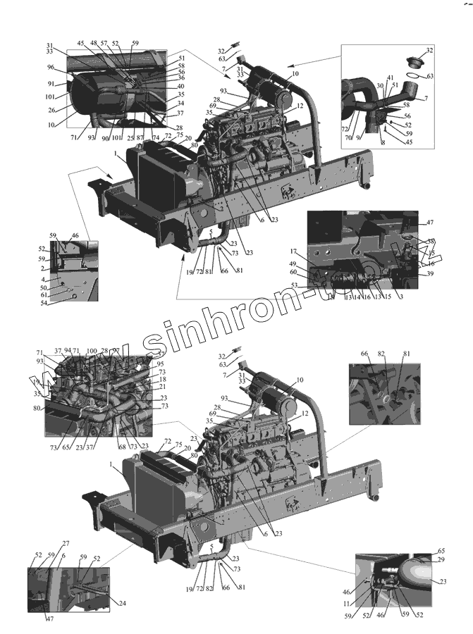Каталог запасных частей к технике: МАЗ-437030 (Зубренок). Установка системы охлаждения 437030-1300005