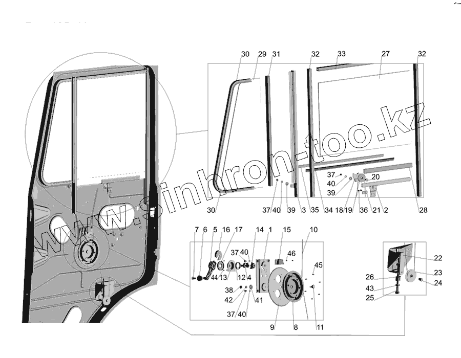 Каталог запасных частей к технике: МАЗ-437030 (Зубренок). Установка стеклоподъемника и ручки стеклоподъемника