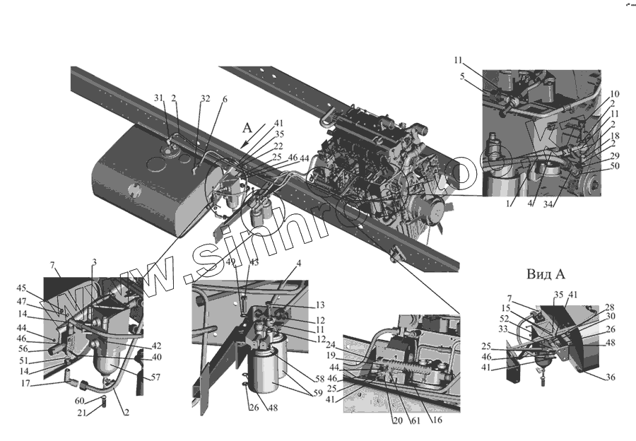 Каталог запасных частей к технике: МАЗ-437030 (Зубренок). Установка топливопроводов 437030-1104002