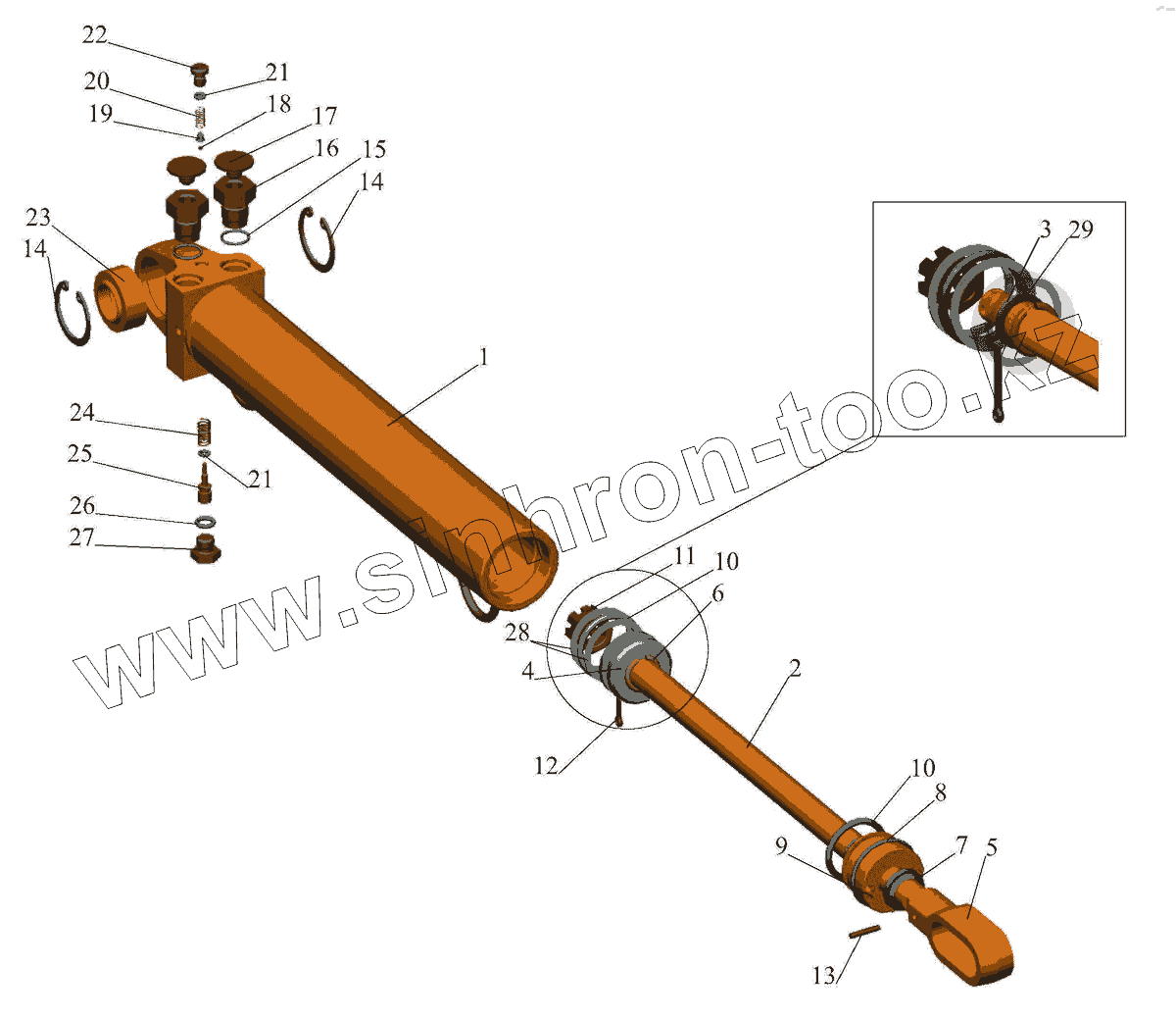 Каталог запасных частей к технике: МАЗ-437040 (Зубренок). Гидроцилиндр 4370-5003010