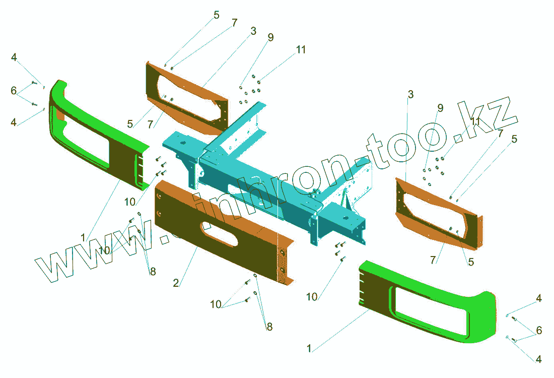 Каталог запасных частей к технике: МАЗ-437040 (Зубренок). Крепление бампера