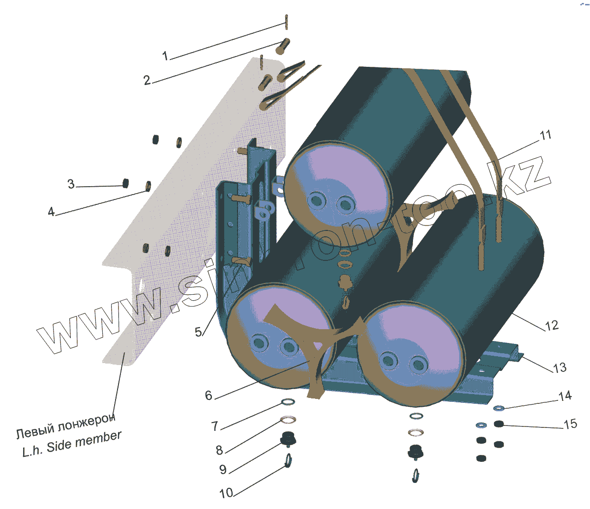 Каталог запасных частей к технике: МАЗ-437040 (Зубренок). Крепление ресиверов