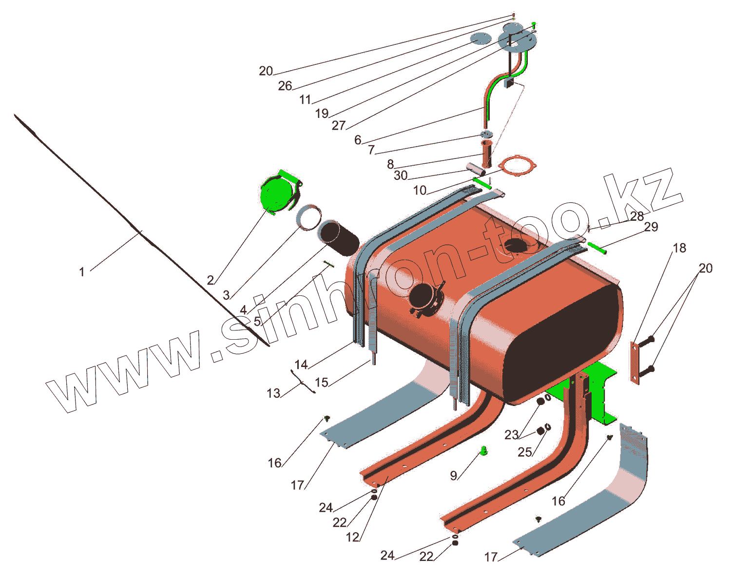 Каталог запасных частей к технике: МАЗ-437040 (Зубренок). Крепление топливного бака 4370-1101002