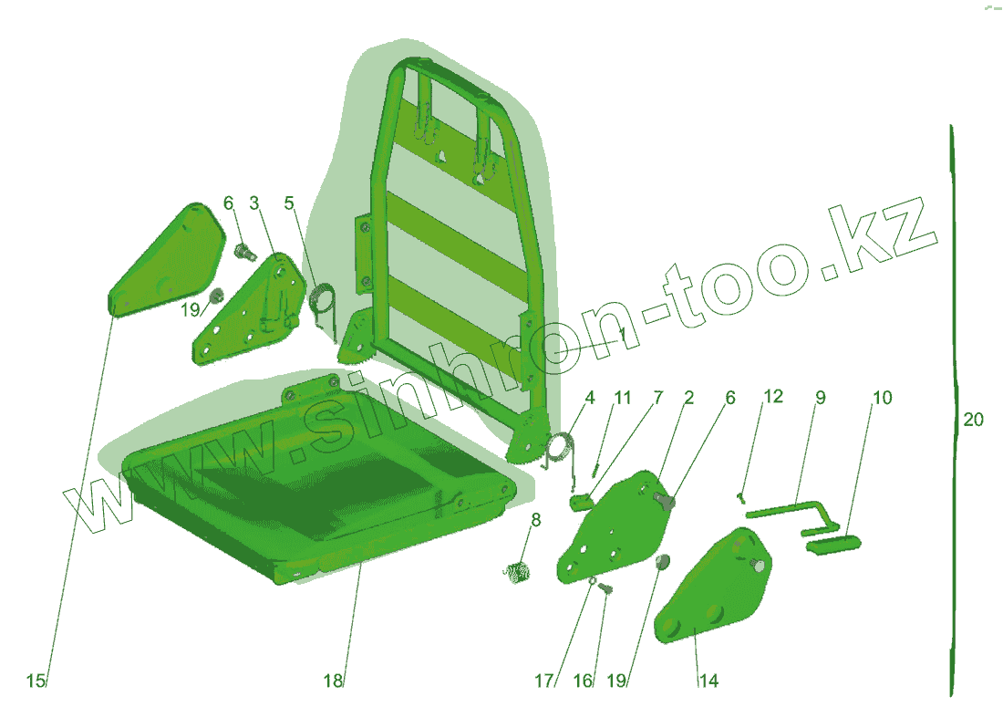 Каталог запасных частей к технике: МАЗ-437040 (Зубренок). Подушка и спинка сидения