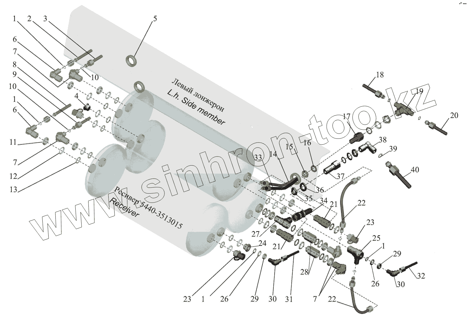 Каталог запасных частей к технике: МАЗ-437040 (Зубренок). Присоединительная арматура к ресиверам МАЗ-437141