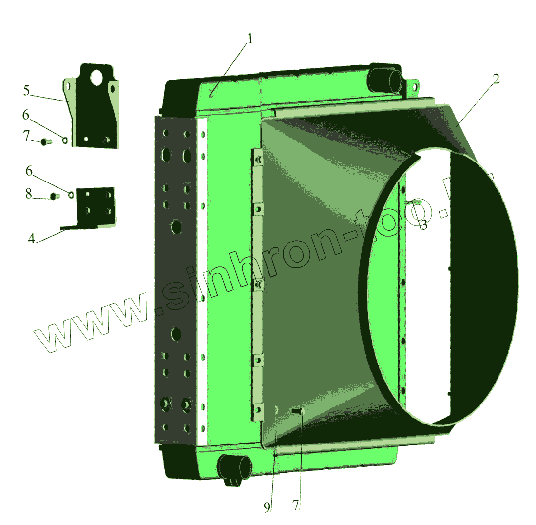 Каталог запасных частей к технике: МАЗ-437040 (Зубренок). Радиатор с кожухом 4370-1301009