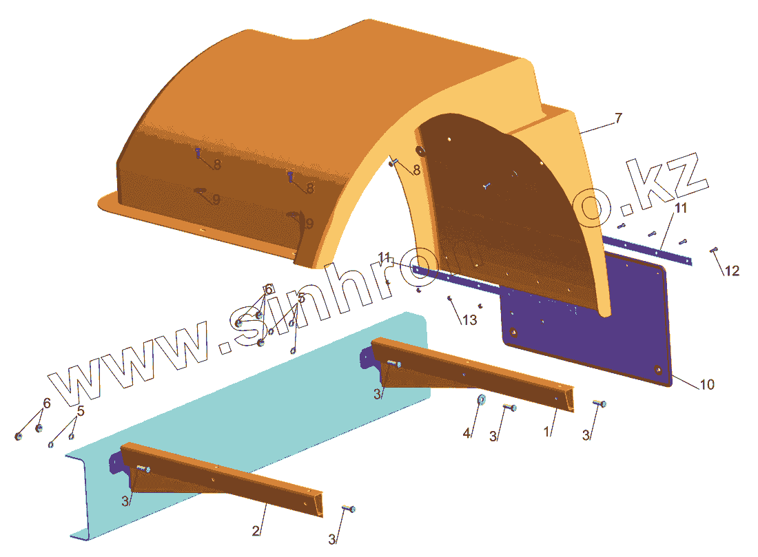 Каталог запасных частей к технике: МАЗ-437040 (Зубренок). Установка брызговиков передних колес