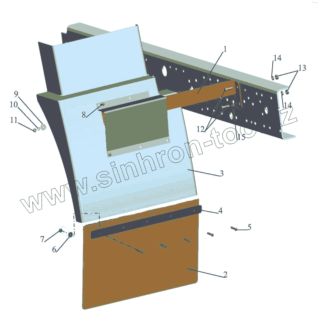 Каталог запасных частей к технике: МАЗ-437040 (Зубренок). Установка брызговиков передних колес 4371-8400030