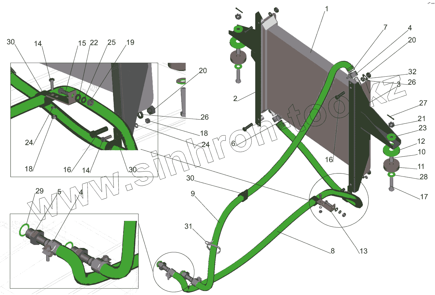 Каталог запасных частей к технике: МАЗ-437040 (Зубренок). Установка масляных радиаторов