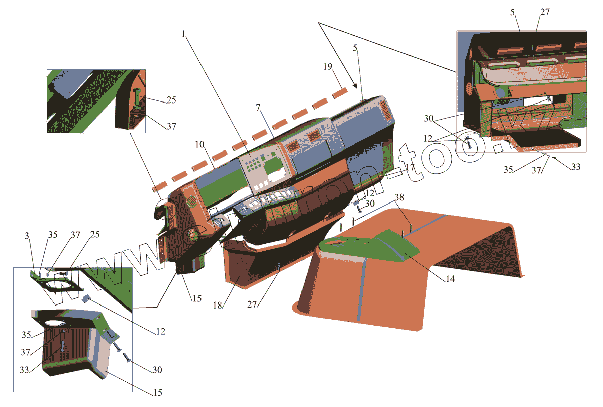 Каталог запасных частей к технике: МАЗ-437040 (Зубренок). Установка панели приборов 4371-5300014