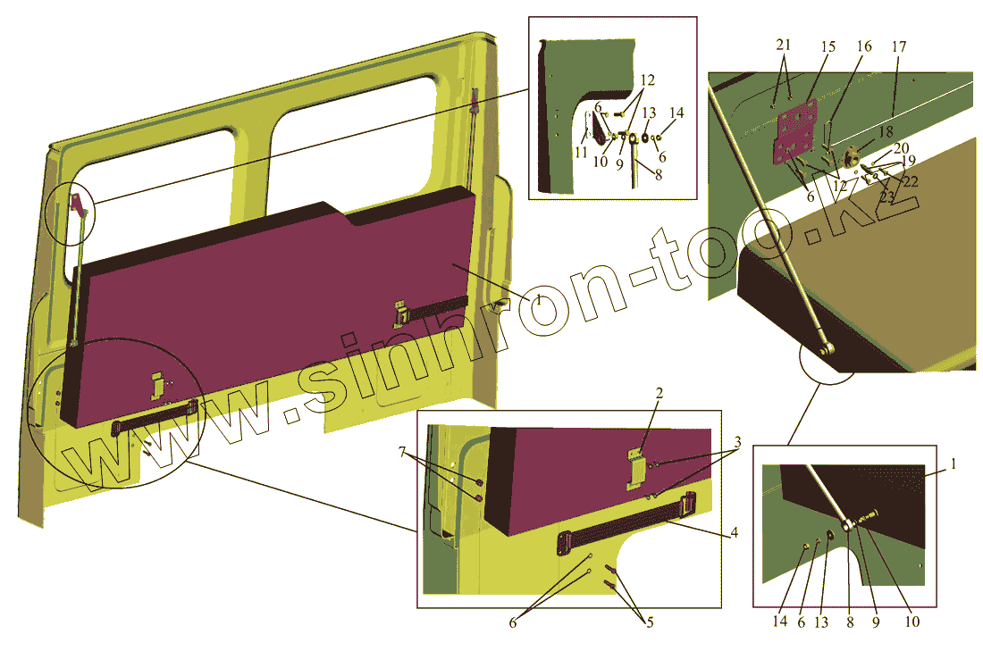 Каталог запасных частей к технике: МАЗ-437040 (Зубренок). Установка спального места 4371-8200010