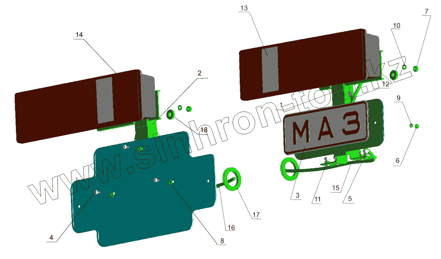 Каталог запасных частей к технике: МАЗ-437040 (Зубренок). Установка задних фонарей
