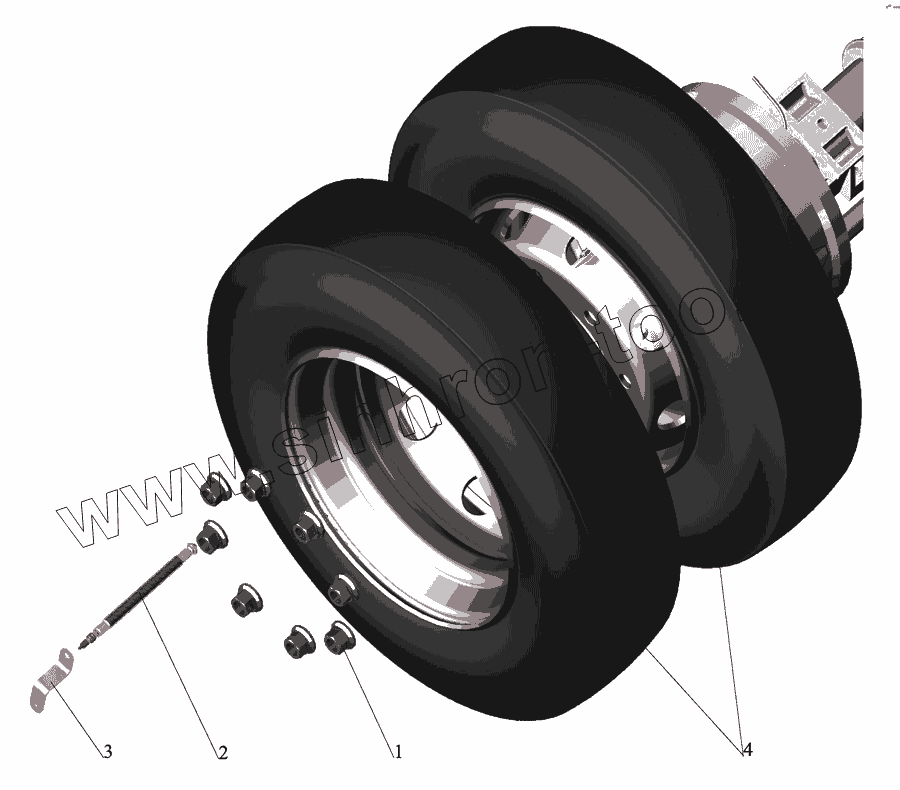 Каталог запасных частей к технике: МАЗ-437040 (Зубренок). Установка задних колес 4370-3100002