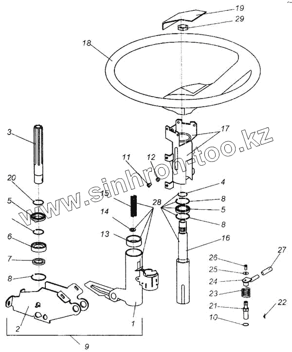 Каталог запасных частей к технике: МАЗ-437040 (Зубренок). Колонка рулевая с колесом рулевого управления