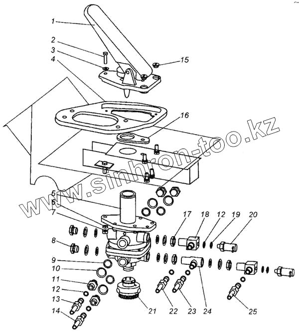 Каталог запасных частей к технике: МАЗ-437040 (Зубренок). Тормозной кран с присоединительной арматурой