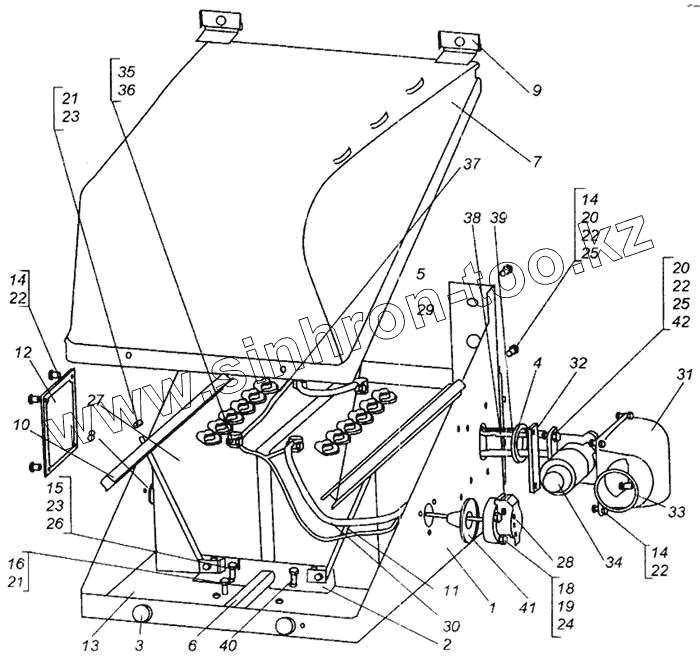 Каталог запасных частей к технике: МАЗ-437040 (Зубренок). Установка аккумуляторных батарей