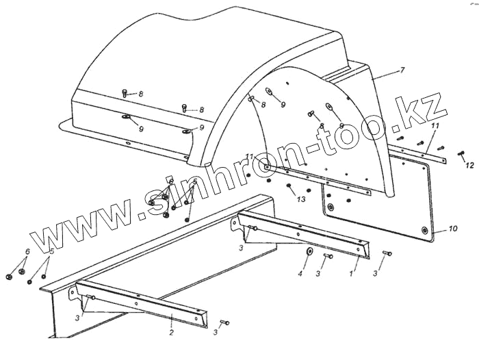 Каталог запасных частей к технике: МАЗ-437040 (Зубренок). Установка брызговиков передних колес