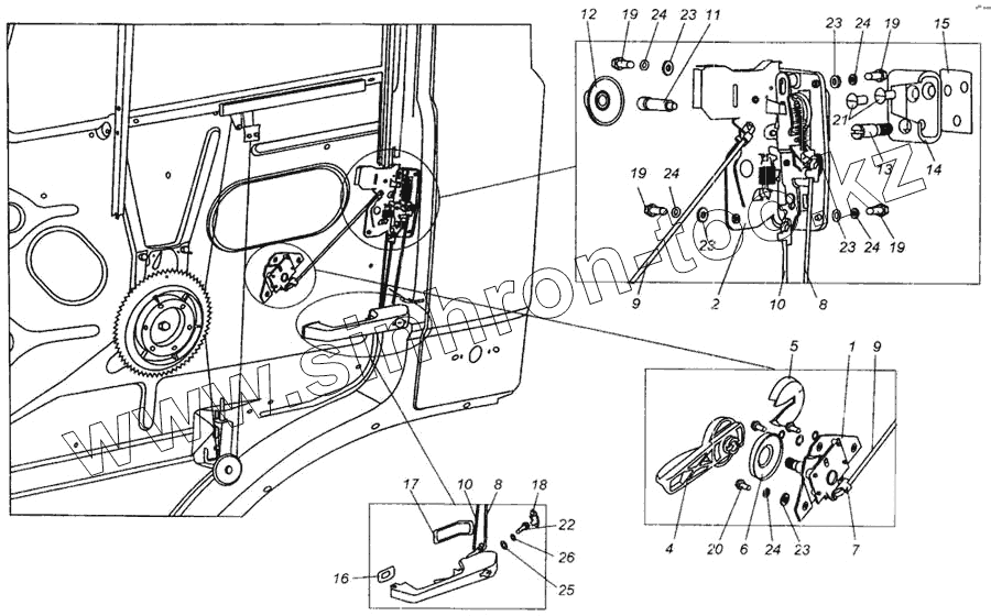 Каталог запасных частей к технике: МАЗ-437040 (Зубренок). Установка наружной ручки и замка двери