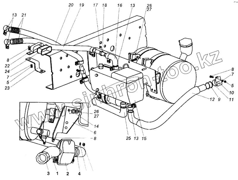 Каталог запасных частей к технике: МАЗ-437040 (Зубренок). Установка подогревателя. Hydronic 10