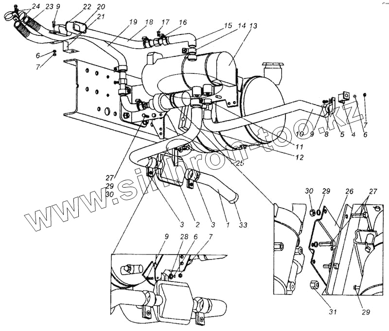 Каталог запасных частей к технике: МАЗ-437040 (Зубренок). Установка подогревателя. Thermo 90S