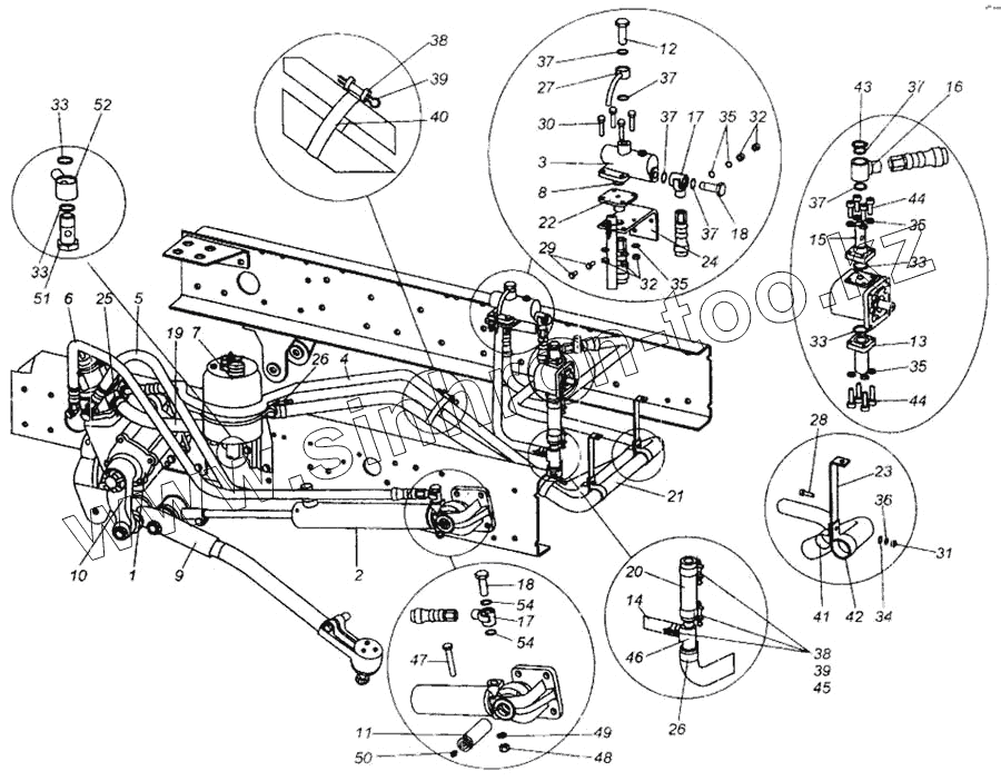 Каталог запасных частей к технике: МАЗ-437040 (Зубренок). Установка рулевого управления