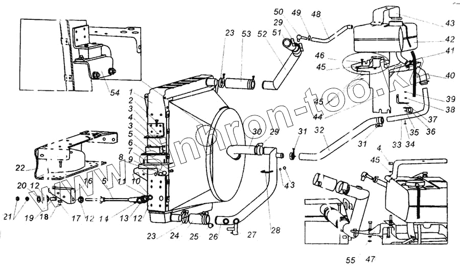Каталог запасных частей к технике: МАЗ-437040 (Зубренок). Установка системы охлаждения